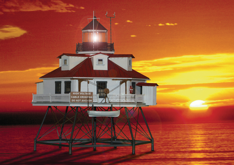 Thomas Point Light House. Chesapeake Bay, Annapolis, Maryland. Kit 1009 ![]() ![]() Three lighthouses have been built to mark the shoals extending out from the north side of South River, four miles south of Annapolis, MD. The original was built in 1824. It was poorly designed and was replaced in 1838. This new light remained until 1894. The present structure was built well out of the shoal and has stood since 1875. In the winder of 1877 the foundation of the new lighthouse and the lens was damaged by heavy ice flows and in 1899 a new model fourth-order lens was installed, as was an icebreaker. By 1964 Thomas Point was the only manned lighthouse on the bay. In 1972 during tropical storm Agnes, the light station was superficially damaged by 23-foot waves. It is the last screw pile lighthouse on the Chesapeake Bay and remains the lighthouse most recognized. On January 23, 1975 the light was declared a historic landmark, which should assure its preservation. Kit Dimensions: • Length: 5 1/2" • Width: 5 1/2" This kit features: • Laser cut wood for easy assembly • Jig for the screw-pile under support construction • Peel-and-stick doors windows and frames • Working beacon (all the electronics are included) • Etched brass parts • Several cast metal parts • Simple step by step instructions • Proudly made in the USA This kit contains small parts and is not intended for small children. Price: 154.95 |
